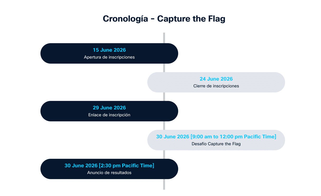 Los estudiantes que cumplan los requisitos deberán registrarse en el evento Capture the Flag entre el 15 y el 24 de junio. Todos los participantes deberán leer y aceptar los términos y condiciones antes de completar su inscripción.